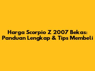 Harga Scorpio Z 2007 Bekas: Panduan Lengkap & Tips Membeli