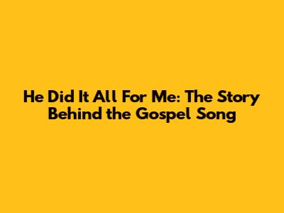 He Did It All For Me: The Story Behind The Gospel Song