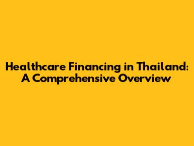 Healthcare Financing In Thailand: A Comprehensive Overview