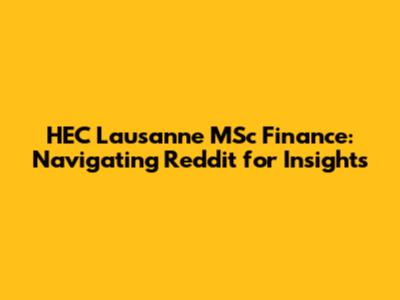 HEC Lausanne MSc Finance: Your Guide To Reddit Insights