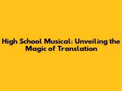 High School Musical: Unveiling The Magic Of Translation