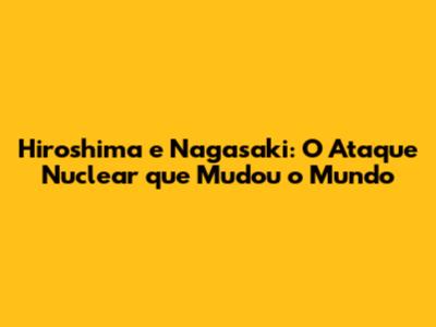 Hiroshima E Nagasaki: O Ataque Nuclear Que Mudou O Mundo
