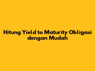 Hitung Yield To Maturity Obligasi Dengan Mudah