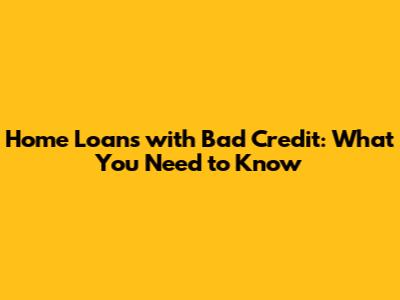 Home Loans With Bad Credit: What You Need To Know