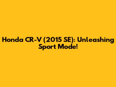 Sport mode in the 2015 SE Honda CR-V can truly transform your driving experience, offering enhanced responsiveness and quicker acceleration when you need it most. By understanding how to engage it, when to use it, and its potential downsides, you can make informed decisions about whether it's right for you. So, go ahead and explore the sporty side of your CR-V – you might just discover a new level of driving enjoyment! Remember to always drive safely and responsibly, and use sport mode judiciously to maximize its benefits without sacrificing fuel economy or vehicle longevity. Happy driving!