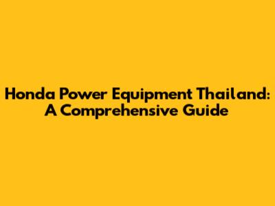 Honda Power Equipment In Thailand: A Comprehensive Guide