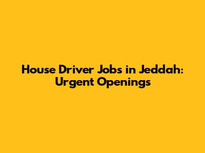 House Driver Jobs In Jeddah: Urgent Openings