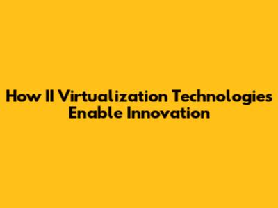 How II Virtualization Technologies Enable Innovation