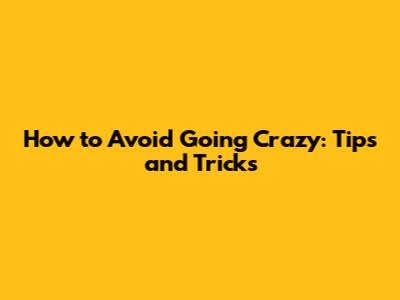 How To Avoid Going Crazy: Tips And Tricks