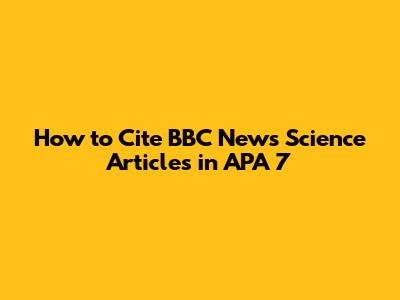 How To Cite BBC News Science Articles In APA 7