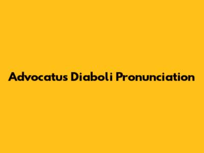 How To Pronounce Advocatus Diaboli Correctly
