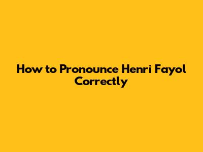 How To Pronounce Henri Fayol Correctly