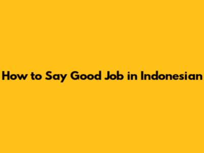How To Say 'Good Job' In Indonesian