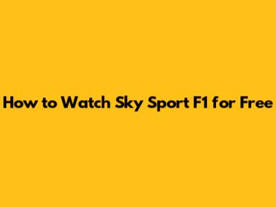 How To Watch Sky Sport F1 For Free