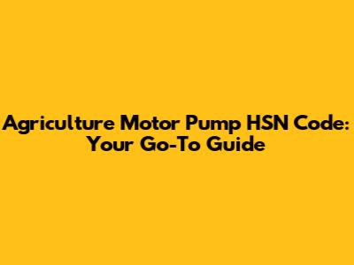 HSN Code For Agriculture Motor Pumps: A Simple Guide