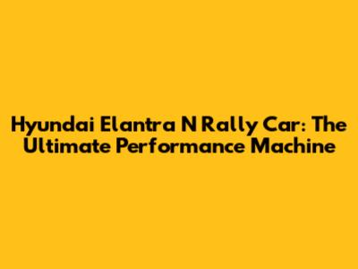 Hyundai Elantra N Rally Car: The Ultimate Performance Machine