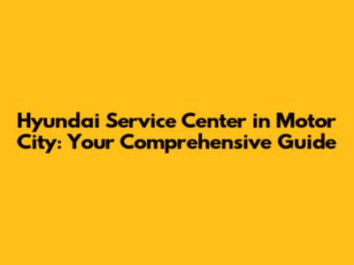 Hyundai Service Center In Motor City: Your Go-To Guide