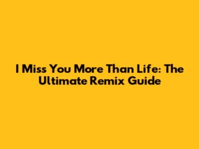 I Miss You More Than Life: The Ultimate Remix Guide