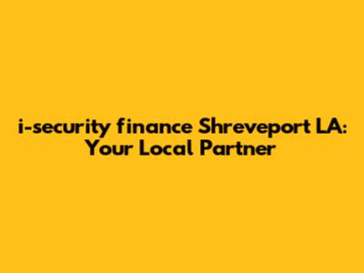 Hey guys! Let's talk about i-security finance Shreveport LA. If you're in the Shreveport, Louisiana area and looking for financial services, especially in the realm of security and perhaps even vehicle financing, i-security finance might be a name that pops up. Now, I know finance can sound a bit dry, but stick with me, because understanding your local financial options is super important for making smart decisions. We're going to dive deep into what i-security finance could offer you, why local is often better, and how you can make the most of their services. So, grab a coffee, get comfy, and let's break it all down.