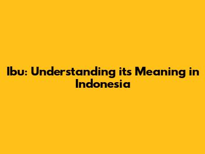 Ibu: Understanding Its Meaning In Indonesia