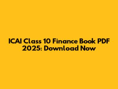 ICAI Class 10 Finance Book PDF 2025: Download Now