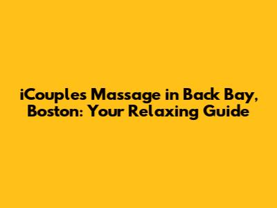 Hey guys! Are you and your partner looking for the ultimate relaxation experience in the heart of Boston? If so, you've come to the right place! We're diving deep into the world of iCouples massage in Back Bay, Boston. Get ready to discover everything you need to know about this amazing service, from what to expect to how to book your session. This article is your go-to guide for a truly unforgettable couples massage experience. Let's get started!