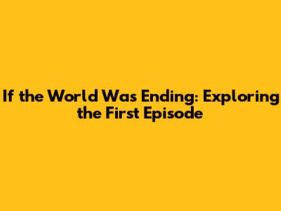 If The World Was Ending: Exploring The First Episode