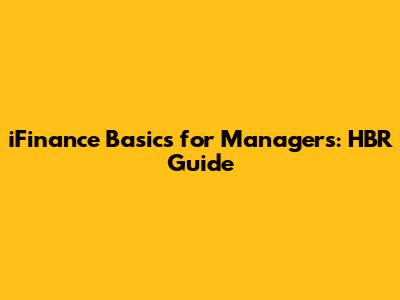 IFinance Basics For Managers: HBR Guide