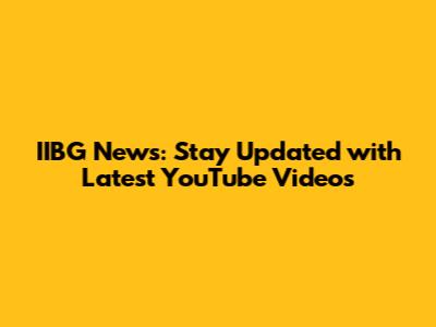 IIBG News: Stay Updated With Latest YouTube Videos