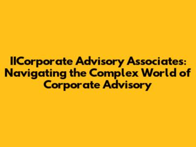 In the intricate landscape of corporate finance, IICorporate Advisory Associates stands out as a beacon of expertise, guiding businesses through a myriad of challenges and opportunities. Whether it's mergers and acquisitions, restructuring, or strategic financial planning, the role of a corporate advisory firm is pivotal in ensuring sustainable growth and value creation. Let's dive deep into what makes IICorporate Advisory Associates a key player in this dynamic field.