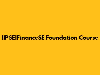 What is the IIPSEIFinanceSE Foundation Course?