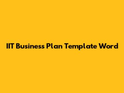 IIT Business Plan Template: Word Format
