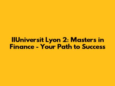 IIUniversit Lyon 2: Master's In Finance - Your Path To Success