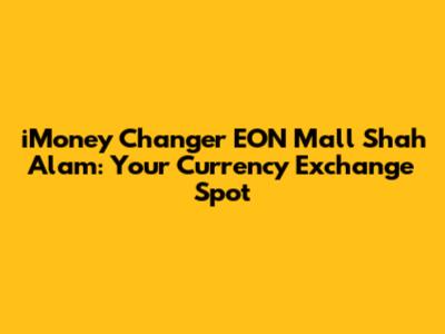 Hey guys! Looking for a reliable spot to exchange your currency in Shah Alam? Look no further! We're diving deep into everything you need to know about the iMoney changer located in EON Mall, Shah Alam. Whether you're a seasoned traveler or just need to exchange some cash, this guide will cover all the essentials, making your experience smooth and hassle-free. Let’s get started!