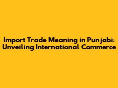 Import Trade In Punjabi: A Comprehensive Guide