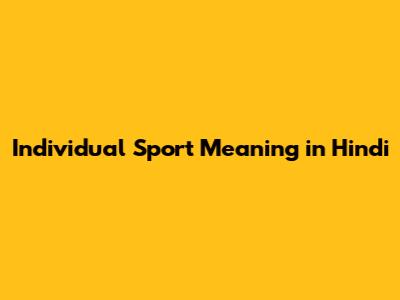 Individual Sport In Hindi: Meaning & Examples