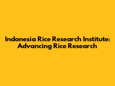 Indonesia Rice Research Institute: Advancing Rice Research
