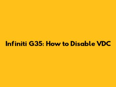 Step-by-Step: How to Turn Off VDC on Your Infiniti G35