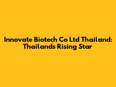 Innovate Biotech Co Ltd: Thailand's Rising Star