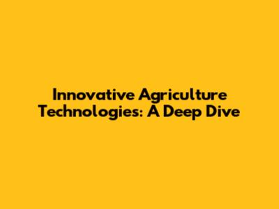 Innovative Agriculture Technologies: A Deep Dive