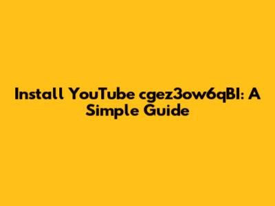 Install YouTube Cgez3ow6qBI: A Simple Guide
