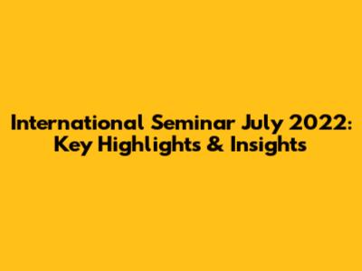 International Seminar July 2022: Key Highlights & Insights