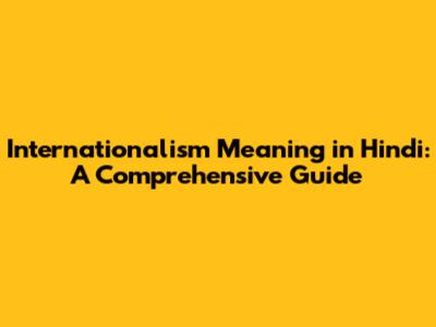 Internationalism Meaning In Hindi: A Comprehensive Guide