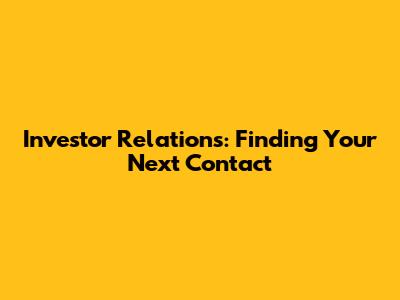 Investor Relations: Finding Your Next Contact
