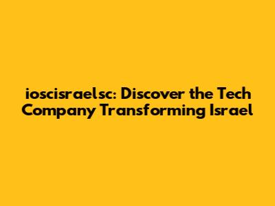 Ioscisraelsc: Discover The Tech Company Transforming Israel