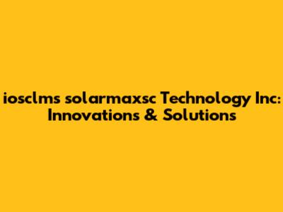 Iosclms Solarmaxsc Technology Inc: Innovations & Solutions