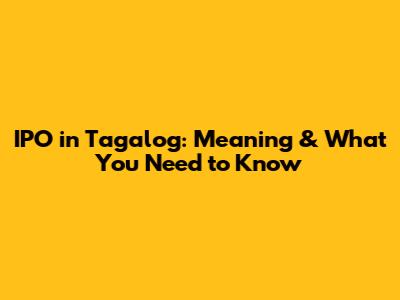 IPO In Tagalog: Meaning & What You Need To Know