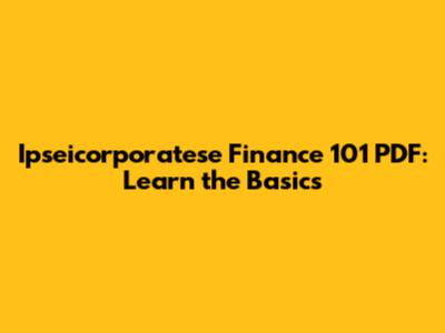 Ipseicorporatese Finance 101 PDF: Learn The Basics