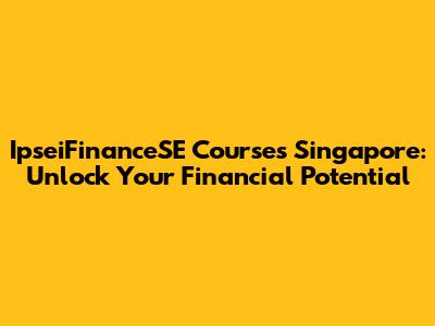 IpseiFinanceSE Courses In Singapore: Your Path To Financial Mastery