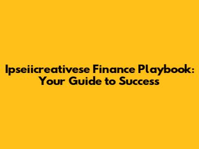 Ipseiicreativese Finance Playbook: Your Guide To Success